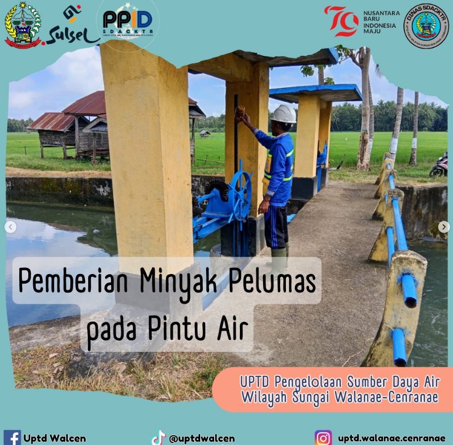 Petugas Operasi Bendung (POB), melakukan pemantauan ketersediaan air dan Pengukuran Besar Debit pada Daerah Irigasi Lanca, Petugas Pintu Air (PPA), melakukan...
